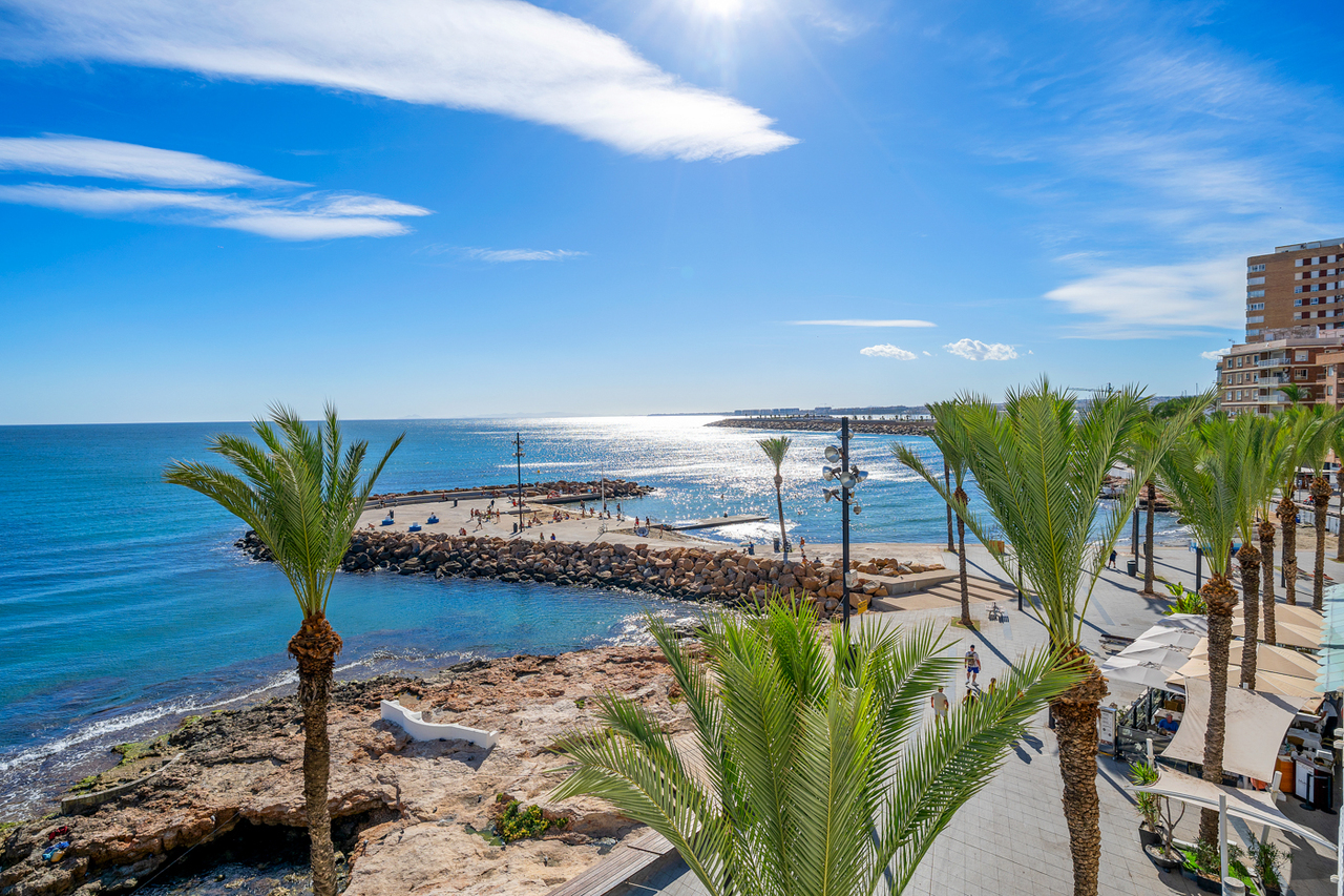Location, location, location... and with frontal with sea views! This fantastic frontline 3 bedroom apartment, on the 3rd floor, in Torrevieja, Alicante has everything you are looking for.The property will be sold fully furnished and boasts a bright living/dining room with sea views, a separate fully equipped kitchen, three bedrooms with fitted wardrobes, two bathrooms (one is en-suite), air conditioning (hot/cold) throughout the property, a balcony with frontal sea views. There is also an allocated parking space and storage room in the underground garage included in the price!Located just a stone’s throw from Playa del Cura, this is an ideal spot for those who want to enjoy life by the sea. The promenade, restaurants, cafés, and shops are all on your doorstep.This is a unique opportunity to invest in a home with an unbeatable location, beautiful views, and a ready-made opportunity for rental income.
